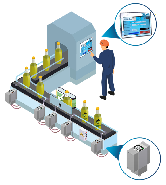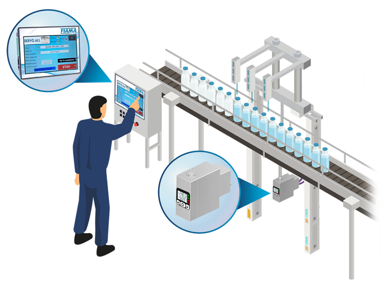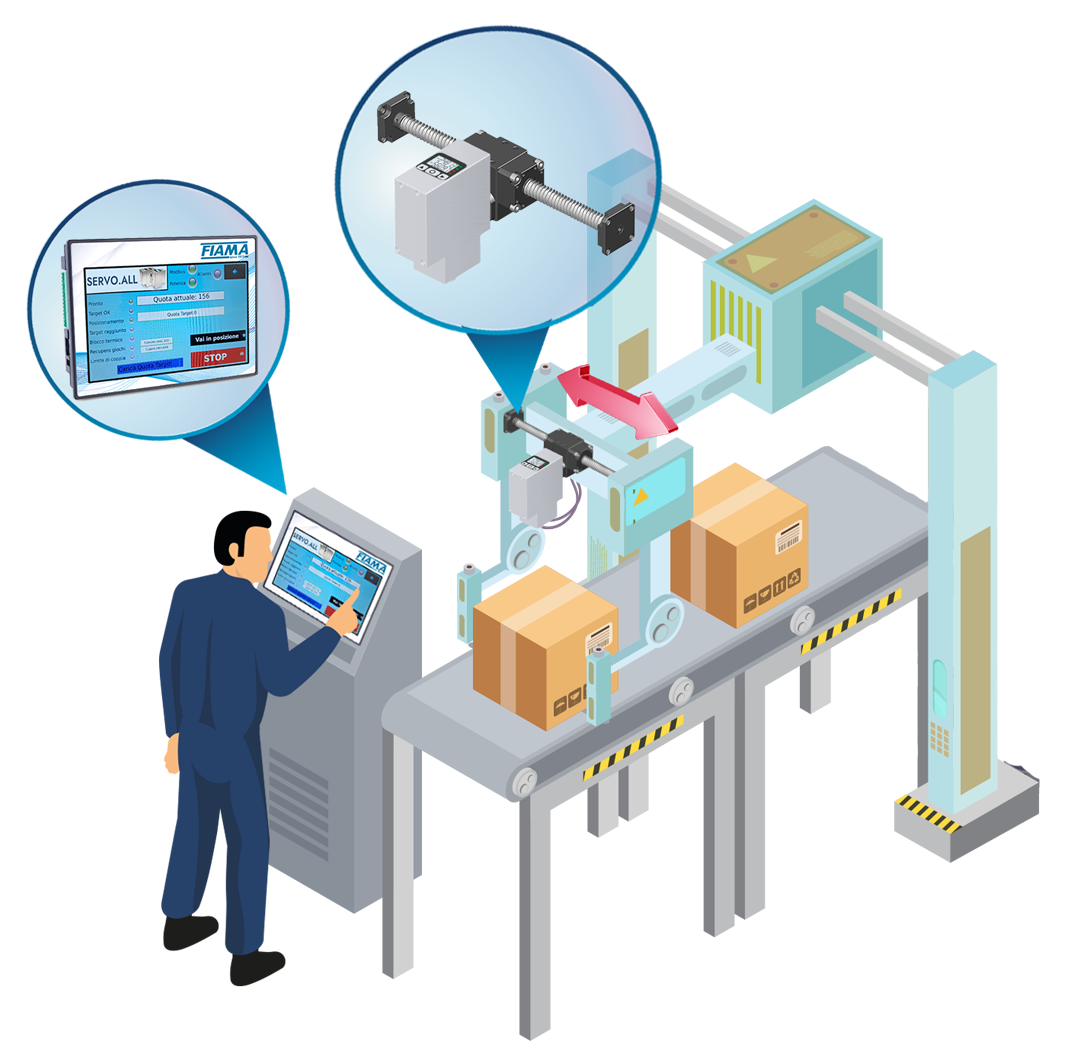 Ideal als Upgrade für die Steuerung einer oder weniger Achsen in Anlagen ohne zentrale SPS – ermöglicht schnelle Einstellungen, automatische oder halbautomatische Formatwechsel und eine einfache Koordination der Abläufe.