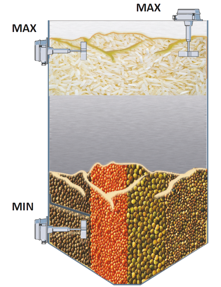 L’apertura o la chiusura del circuito elettrico permette di comandare segnali acustici o visivi, oppure di controllare il carico del silo, l’arresto di trasportatori, coclee, ecc.