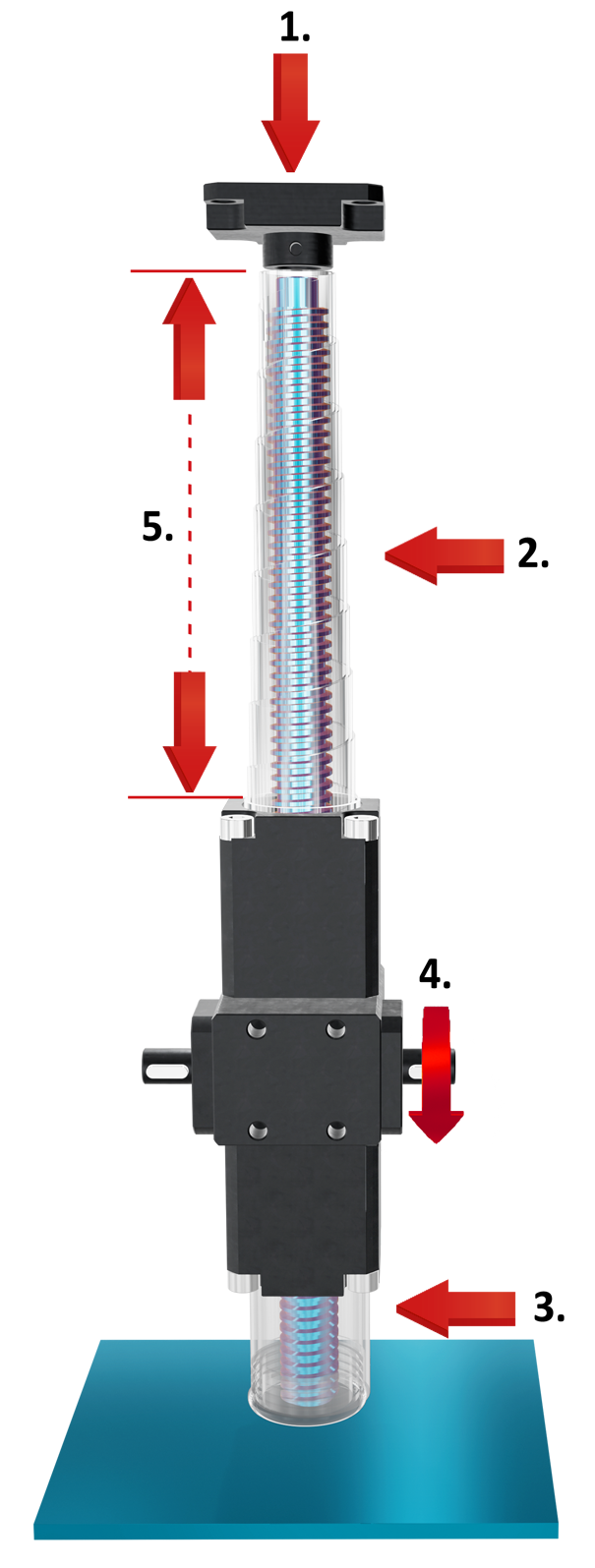| I martinetti a vite trapezia richiedono un adeguato supporto strutturale (non incluso nella fornitura) per garantire la corretta movimentazione del carico e la stabilità del sistema. L’unità deve essere fissata saldamente alla struttura della macchina mediante una base piana, rigida e perfettamente allineata. | |