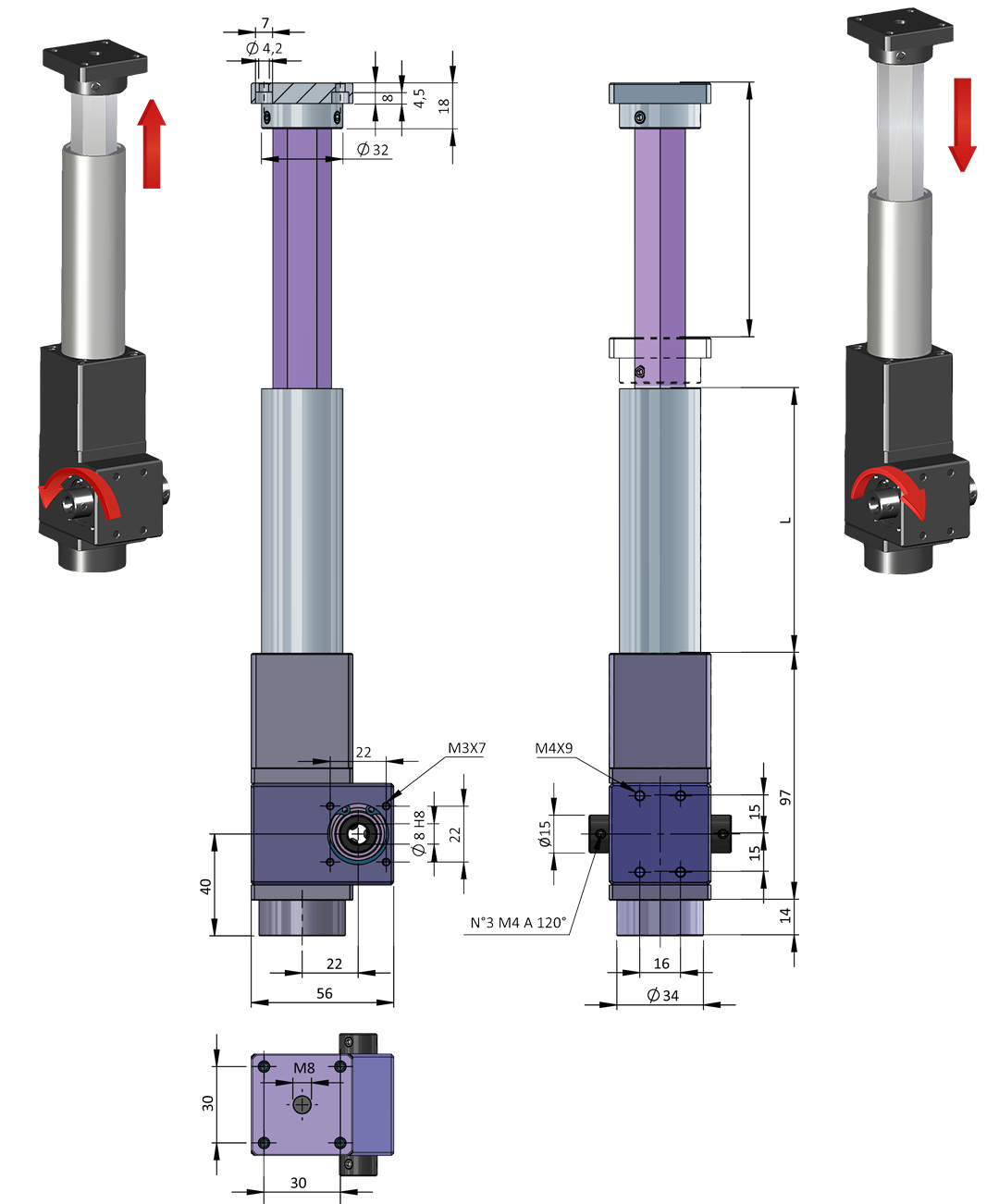 | • Corsa (mm) = è la misura lineare necessaria per movimentare il carico, in genere coincide con la lunghezza totale dell’asta fillettata |